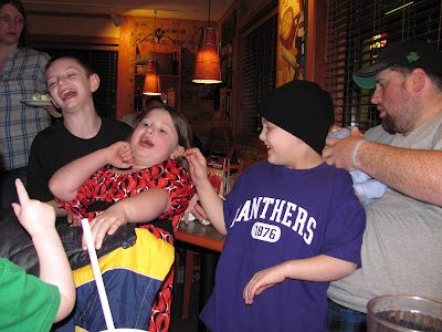 After Ollie's benefit we came home and he played Wii Karaoke with Uncle Bry and Uncle Chad. I believe they sang "Solid as a Rock", "Human" and "Do you think I'm sexy" hehehe